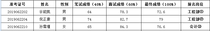 共有3名人選入圍體檢環(huán)節, 具體信息詳見(jiàn)附件1。
